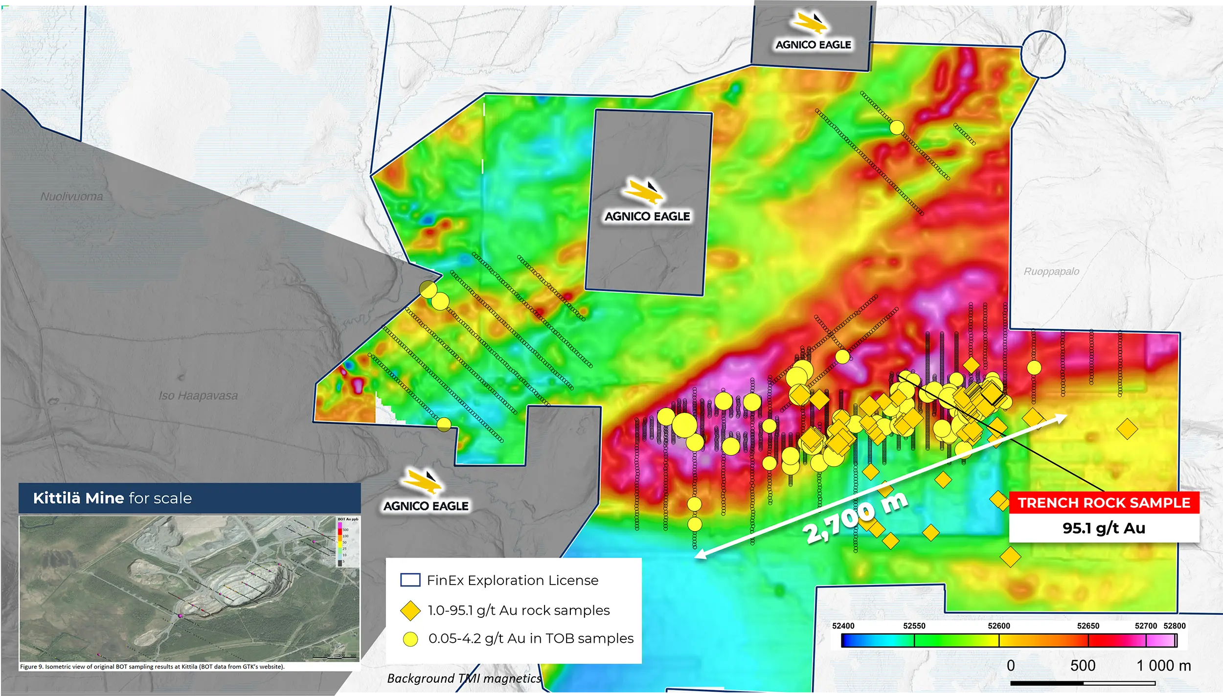 Project adjoins Agnico Eagle’s Kittilä mine land position ¹